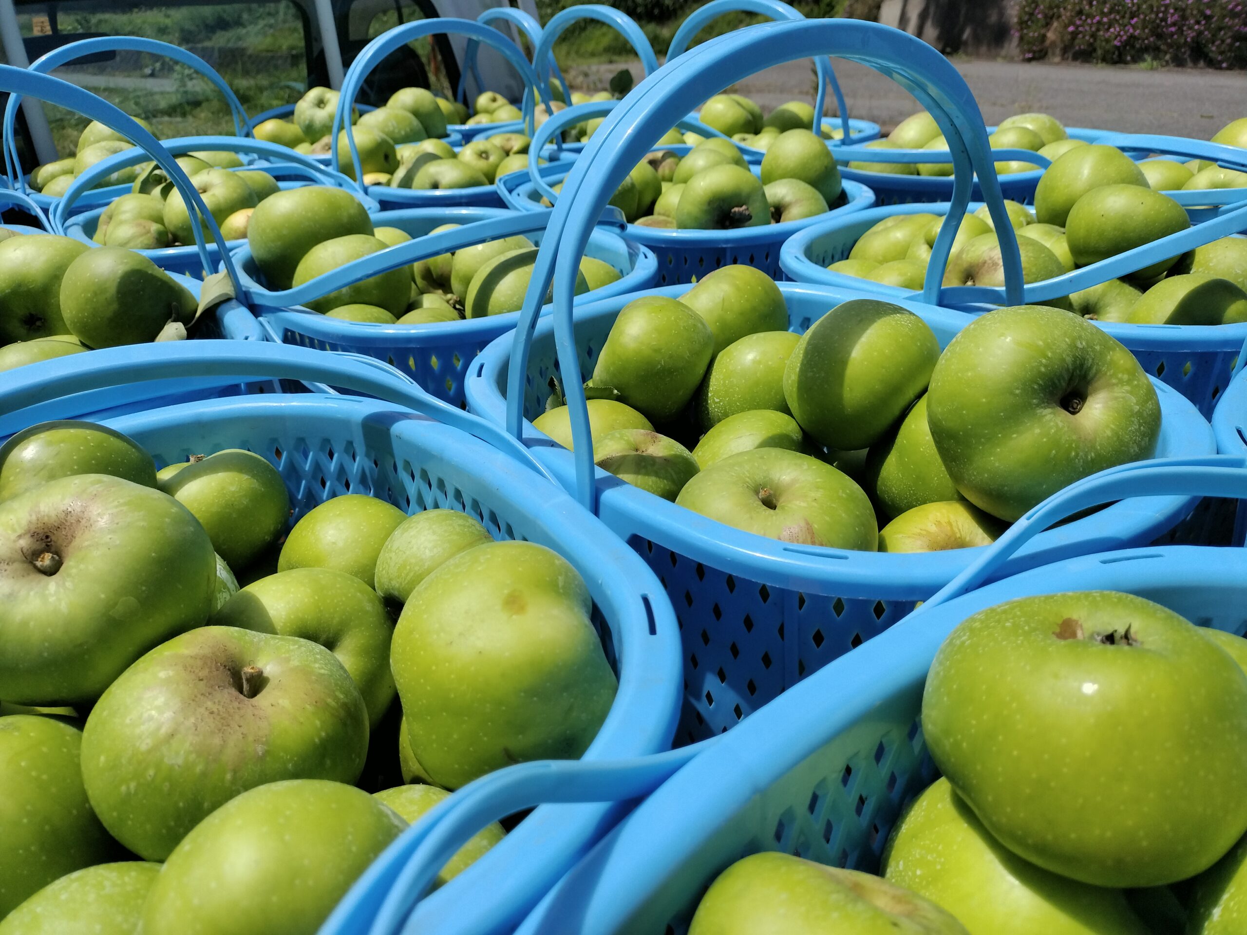 14日から2023年産のりんごの収穫が始まりました。まずは青りんごのブラムリーです。